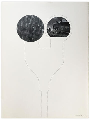 Collage image de magasine avec découpe en reprint de l’horodateur sur feuille d’Arches.
