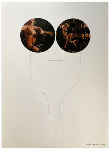Collage image érotique de magasine en couleur avec découpe en reprint de l’horodateur sur feuille d’Arches.