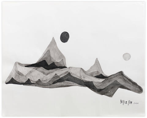 Lavis d’encre de Chine sur papier fin.