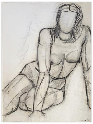 Académie féminine de dos, fusain sur fin papier Ingres.