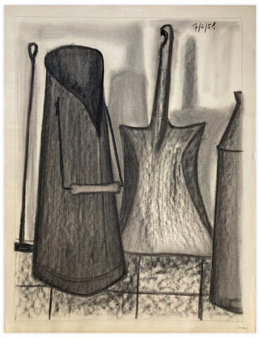 Dessin, fusain et crayon gras sur papier Ingres fin.