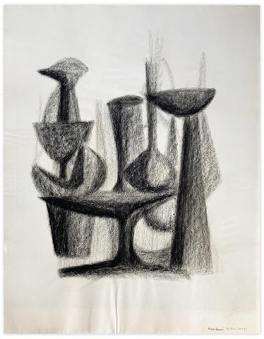 Dessin, fusain et crayon gras sur papier Ingres fin.