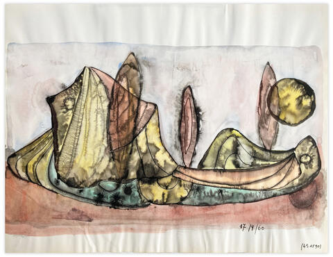 Oeuvre datée 17/4/1960 en bas vers la droite et numérotée 1590 en bas à droite.