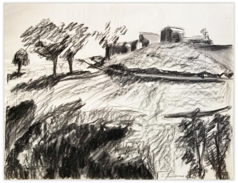 Paysage, fusain et crayons gras sur fin papier Ingres