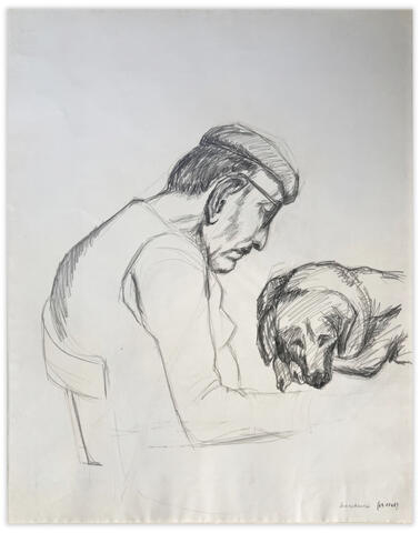 rgba(255,255,255,1) Henri MaccheroniSans titre, Journal de l’œuvre - sans dateHomme avec chien, fusain sur fin papier Ingres.Oeuvre signée, numérotée 1548 en bas à droite.63 x 49 cm© Henri Maccheroni Demande d'information
