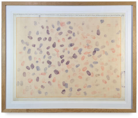 rgba(255,255,255,1) Jean-Jacques LebelEmpreintes digitales des participants au happening "120 minutes" - 1966Empreintes digitales à la peinture sur papier.62 x 77 cm.© Jean-Jacques Lebel, artiste Demande d'information