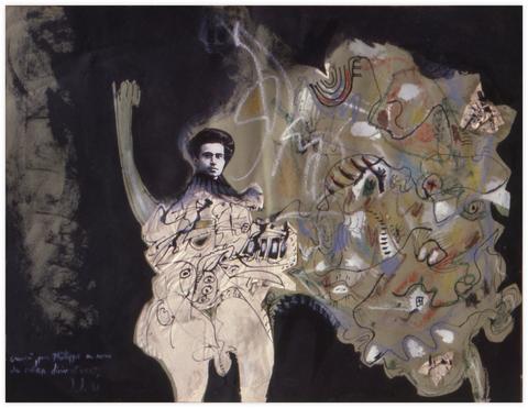 rgba(255,255,255,1) Jean-Jacques LebelGramsci - 1957Collage et gouache.65 x 50 cm.Collection Philippe Hiquily.© Jean-Jacques Lebel, artiste Demande d'information