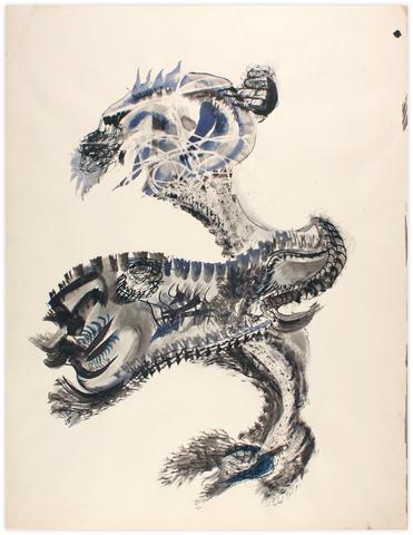 Lavis d'encre de Chine et cire de bougie sur papier.