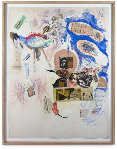 Peinture à l'huile, collage et crayons de couleurs sur carton, 107 x 79,5 cm.