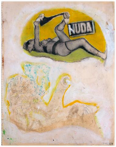 rgba(255,255,255,1) Jean-Jacques LebelNuda - 1963Collage sur papier.41 x 32 cm. © Jean-Jacques Lebel, artiste Demande d'information