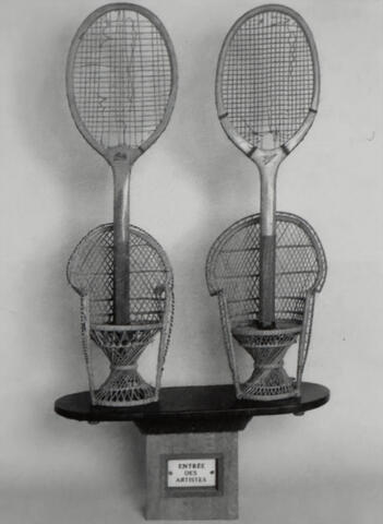 rgba(255,255,255,1) Jean-Jacques LebelPretty Storm - 1990Sculpture, raquettes de tennis, bois.Dimensions inconnues.© Jean-Jacques Lebel, artiste Demande d'information
