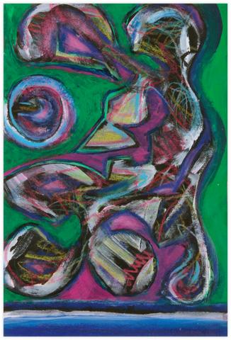rgba(255,255,255,1) Jean-Jacques LebelSans titre (fond vert) -Gouache sur papier.23,7 x 16 cm.© Jean-Jacques Lebel, artiste Demande d'information