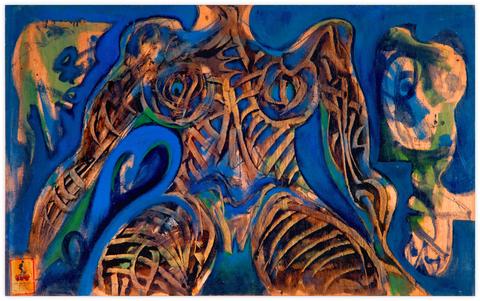 rgba(255,255,255,1) Jean-Jacques LebelSuzanne et les Vieillards - 1959Peinture Ripolin sur panneau de contreplaqué.76 x 122 cm. © Jean-Jacques Lebel, artiste Demande d'information