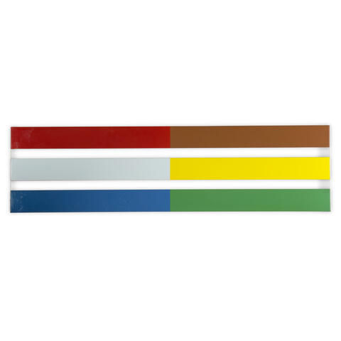 rgba(255,255,255,1) Jean LegrosTôle émaillée triple (rouge, gris, bleu)Tôle émaillée, 53,5 x 206 cm.Cachet d'atelier au dos.© Atelier Jean Legros Demande d'information