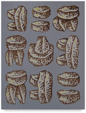 formes: Gris clair mouchetés Brun et Jaune, fond: Gris.