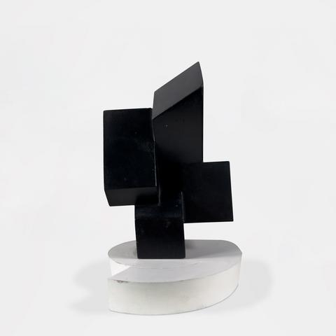 rgba(255,255,255,1) Joël FromentSculpture noire, socle blanc0529Peinture acrylique sur bois,Pièce non signée.© Archives Joël Froment
