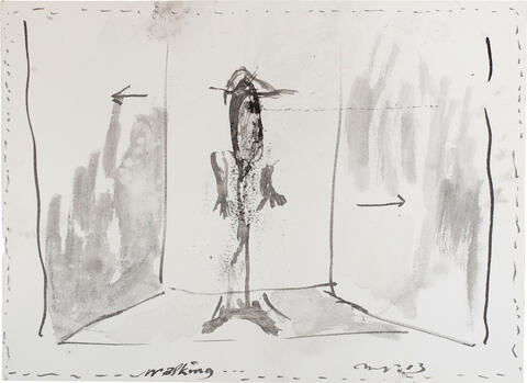 Pièce titrée " walking" en bas à gauche , signée et datée "MP (20)13" en bas à droite.