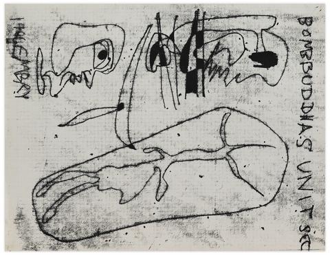 rgba(255,255,255,1) Norris EmbryBomb Buddhas Unit Scc (Visage de femme de profil), 1966Signé et daté '1966 EMBRY' (en bas à gauche), titré 'BOMB BUDDHAS UNIT SCC' (en haut) monotype sur papier 27.8 x 21.6 cm.
