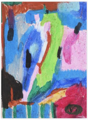 rgba(255,255,255,1) Norris EmbrySans titre (Composition verte, bleu, rose), vers 1965-66Signé 'NO' (en bas à droite) Crayon gras sur papier 27 x 20 cm.