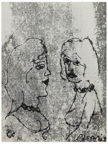 rgba(255,255,255,1) Norris EmbrySans titre (Deux femmes au collier), 1966Signé 'Norris' (en bas à droite), daté '66' (en bas à gauche) monotype sur papier 27.8 x 21.6 cm.