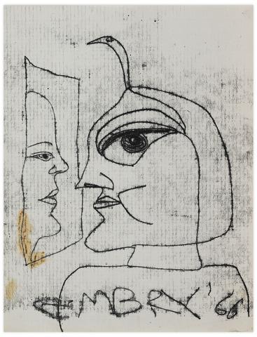 rgba(255,255,255,1) Norris EmbrySans titre (Deux profils), 1966Signé et daté 'EMBRY 66' (en bas) monotype sur papier 27.8 x 21.6 cm.