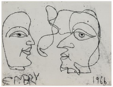 rgba(255,255,255,1) Norris EmbrySans titre (Deux visages de profil), 1966Signé 'EMBRY' (en bas à gauche), daté '1966' (en bas à droite) monotype sur papier 21.6 x 27.8 cm.