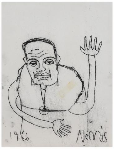 rgba(255,255,255,1) Norris EmbrySans titre (Homme à mi-corp, bras levé), 1966Signé 'Norris' (en bas à droite), daté '66' (en bas à gauche) monotype sur papier fin 27.8 x 21.4 cm.