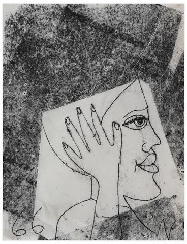 rgba(255,255,255,1) Norris EmbrySans titre (Main sur un visage de profil), 1966Signé de l'initiale 'N' (en bas à droite), daté '66' (en bas à gauche) monotype sur papier 27.8 x 21.4 cm.