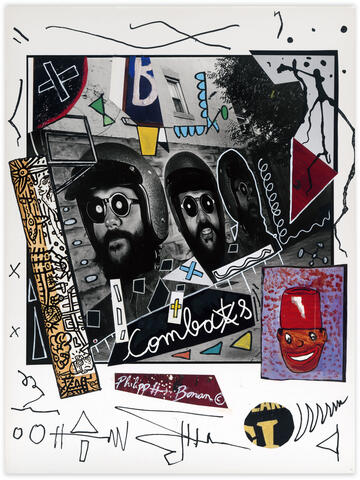 rgba(255,255,255,1) Philipp Hugues BonanSans titre (Combats)Collage et peinture sur photo en hommage à Robert Combas, 40 x 30 cm. Demande d'information