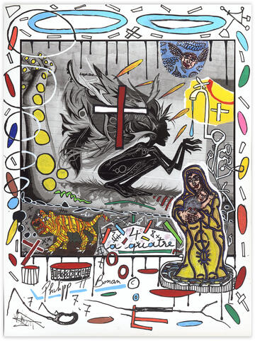 rgba(255,255,255,1) Philipp Hugues BonanSans titre (goutte)Collage et peinture sur photo en hommage à Robert Combas, 40 x 30 cm. Demande d'information