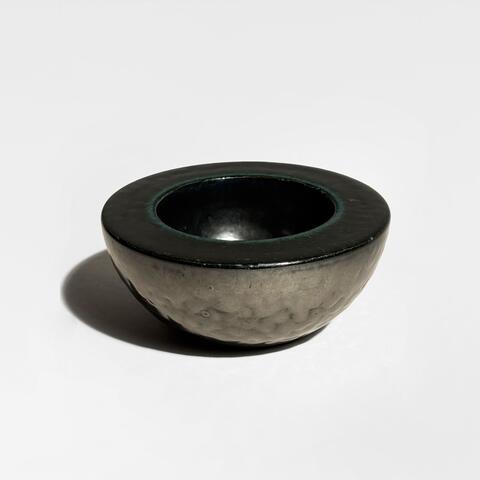 Faïence, émail noir lustré argent.