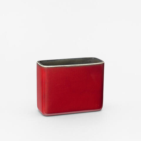 Vase brique, moyen modèle, émail rouge, intérieur noir lustré argent.