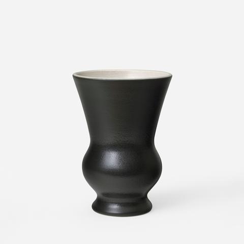 Vase, émail noir lustré argent, intérieur blanc.