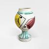 Vase poissons sur pied douche. Email blanc mat et dessins émail noir, bleu pâle, pourpre.