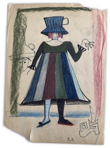 rgba(255,255,255,1) Vladimir YankilevskyCostume – Rimma, 1961Indian ink on paper, 28.8 × 20.8 cm.© Vladimir Yankilevsky
