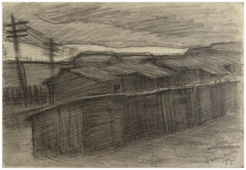 rgba(255,255,255,1) Vladimir YankilevskyLandscape. Sheds, 1955Pencil on paper, 14.6 × 20.6 cm.© Vladimir Yankilevsky