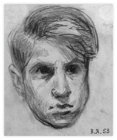 rgba(255,255,255,1) Vladimir YankilevskySelf-portrait, 1953Pencil on paper, 14 × 12 cm © Vladimir Yankilevsky