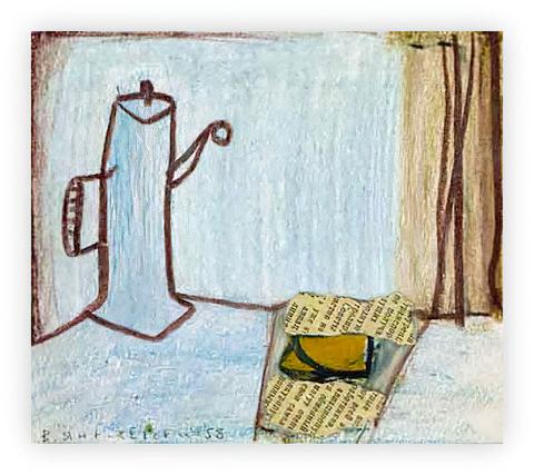 rgba(255,255,255,1) Vladimir YankilevskyStill Life with a Teapot, 1958Pastel on paper, collage, 13 × 14.7 cm © Vladimir Yankilevsky