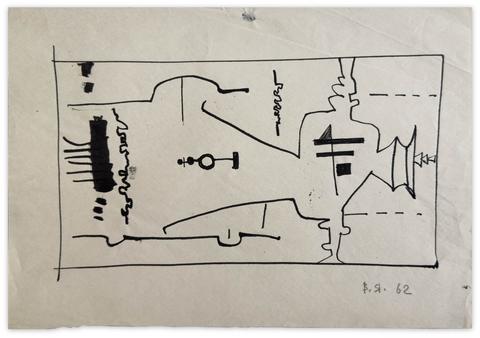 rgba(255,255,255,1) Vladimir YankilevskyTheme and Improvisation, 1962Indian ink on paper, 13 × 23 cm.© Vladimir Yankilevsky
