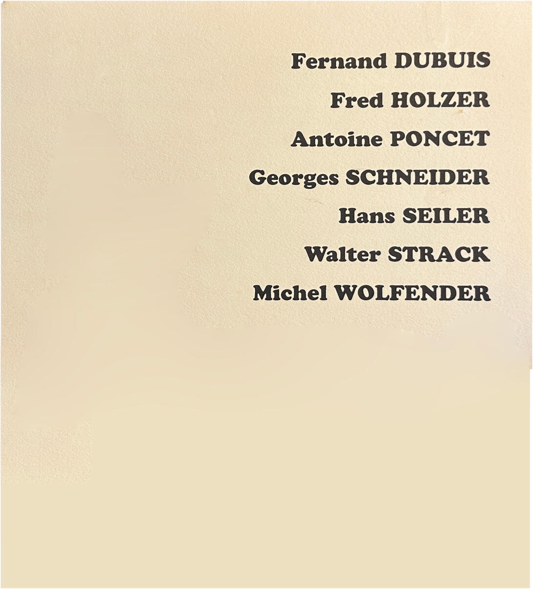 Une exposition avec Fernand Dubuis, Fred Holzer, Antoine Poncet, Georges Schneider, Hans Seiler, Walter Strack, Michel Wolfender.