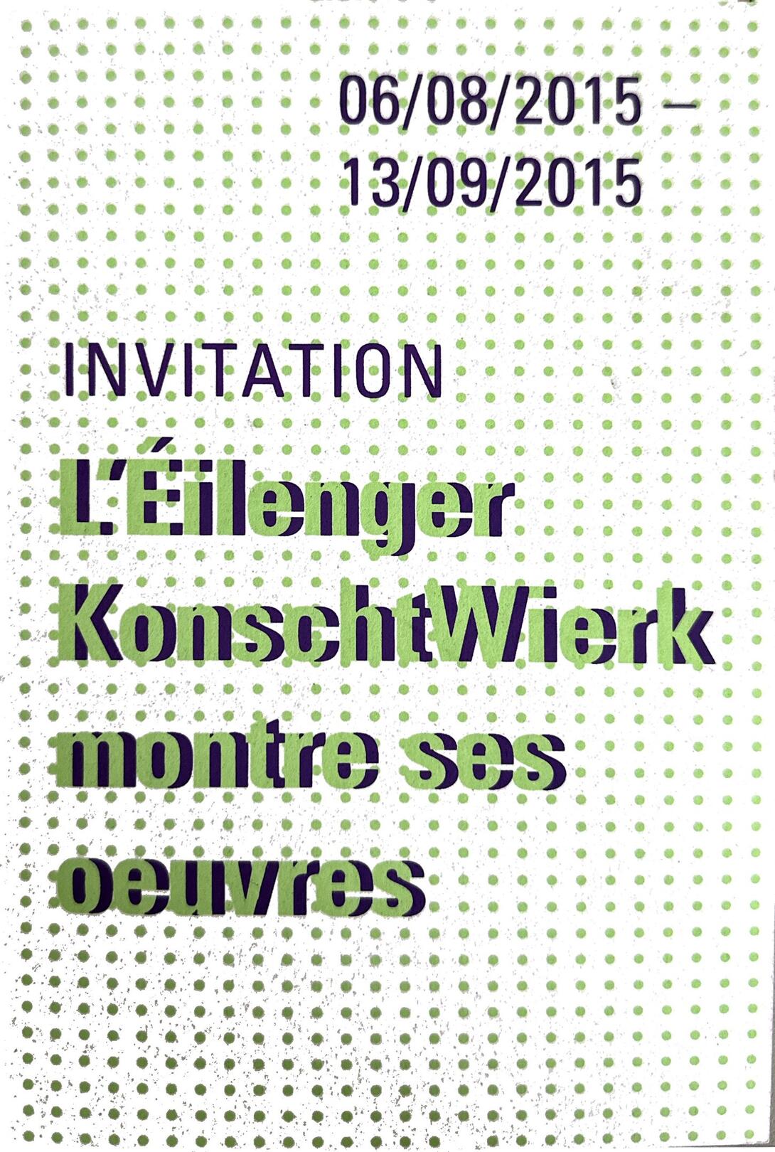 L'ATP a.s.b.l. a le plaisir de vous inviter au « Closing» de l'exposition « Éilenger KonschtWierk», qui aura
