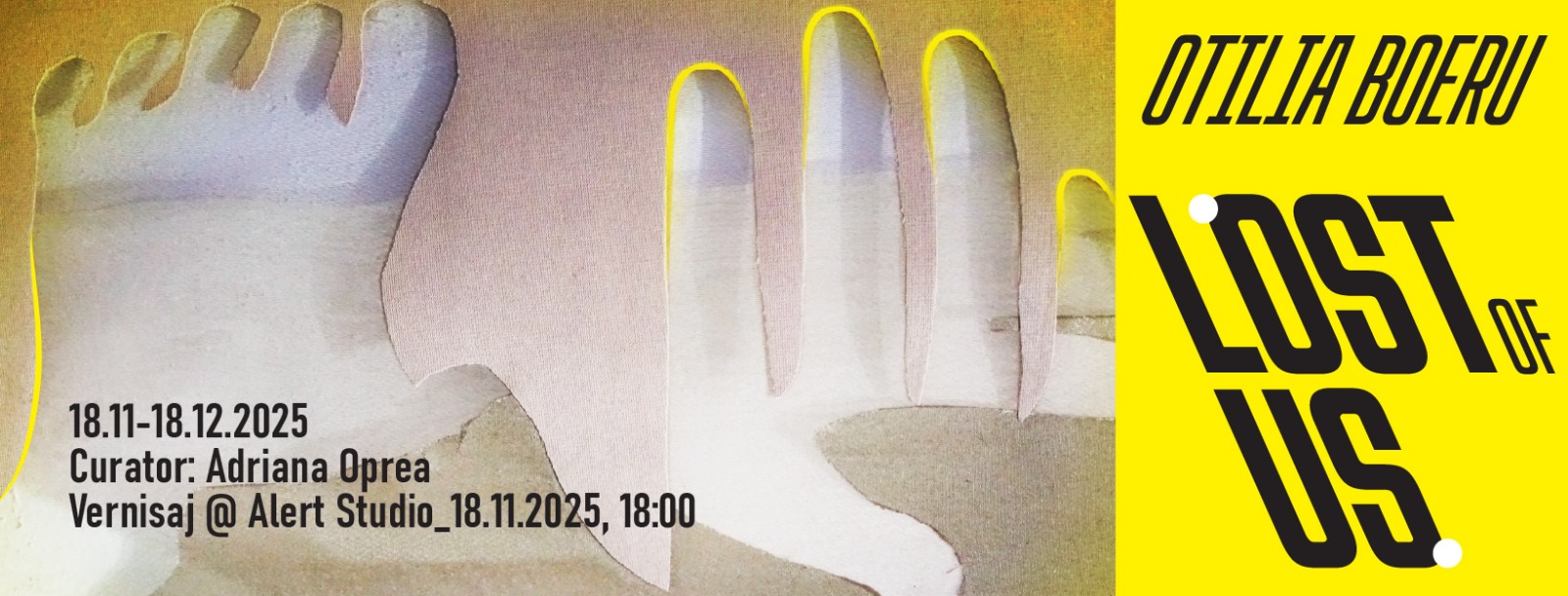 Using heterogeneous materials, the artist’s soft sculptures, assemblages, reliefs, and textile prints align with compositions built from insignificant materials and leftovers from the studio—lint, dust, flakes of paint detached from working surfaces—in order to coagulate an ambivalent and paradoxical overall view. The trans-corporeal de-materialization to which human life is exposed today can nevertheless be counteracted by attempts, such as the one proposed here by the artist, to return to humanity, to embodiment and the reappraising of the living being. Within this thematic field—shared within series of textile works created over the years—Otilia Boeru makes use of the aesthetic metaphor of human hands, displayed in conglomerates and textile installations that are multi-textured and left unfinished, generic and anonymous.