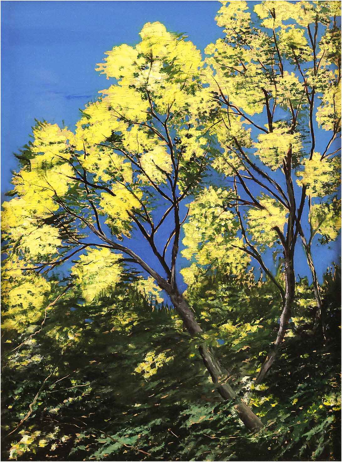Loin d'un être un retour nostalgique sur une enfance lointaine, la puissance lumineuse des oeuvres présentées à la galerie Françoise Besson, nous plonge dans la luxuriance vibratoire des plantes du sud, dans un bain végétal total qui remue nos sens émoussés. Véritable fontaine de jouvence et de lumières, antidote judicieuse et bienvenue aux nuages menaçants qui s'accumulent dans le ciel.