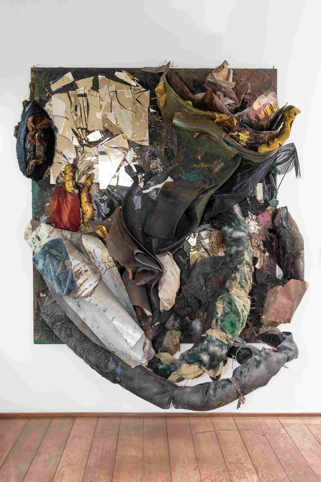 Participating artists include André Komatsu (São Paulo, 1978), Chelpa Ferro, Emmanuel Nassar (Capanema, 1949), Nuno Ramos (São Paulo, 1960), and Mariana Manhães (Niterói, 1977). Highlights include a work from the series Act of… (2013) by Komatsu, which uses construction safety items mounted within frames as both image and support structure, and the work of Nuno Ramos, who sublimates the physical dimension of semantic processes by layering materials.