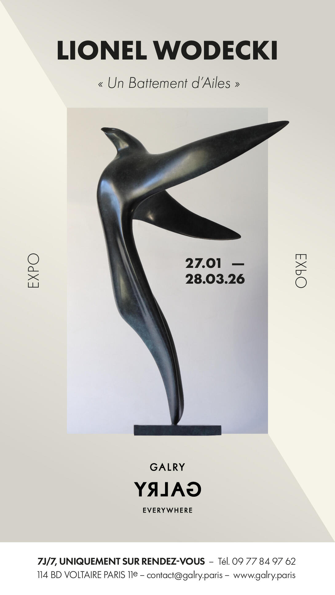 Une exposition d'une série de nouvelles sculptures, de différents formats et matériaux, de Lionel Wodecki.