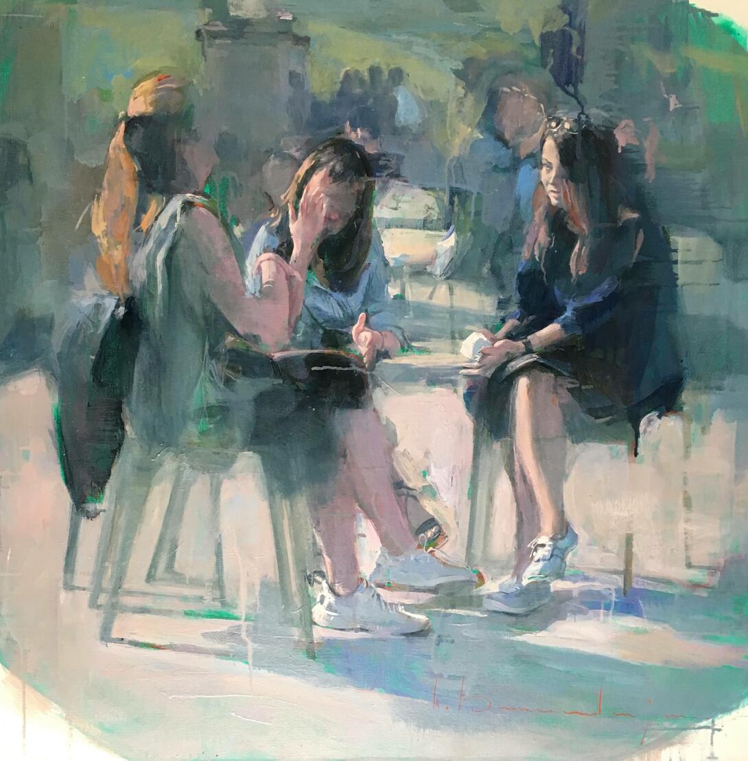 Dans mes peintures, je m’interroge sur les différentes possibilités de représentation. Je travaille sur la mise en évidence des structures picturales, sur la transformation des formes, sur la remise en cause du temps et de l’espace… De près il y a des traits de peintures, des gestes, parfois brusques, violents, rageurs… de plus loin le bruit et la vie d’une métropole ou d’un paysage. Plus on recule, plus l’on s’éloigne de la toile, plus la vision se fait précise, tout n’est pas saisi au premier coup d’œil, le tableau est ainsi vivant.