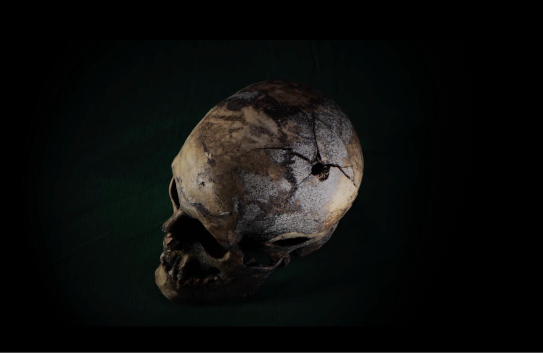 Based on the skull of an unidentified victim, artist Maya Watanabe addresses deaths caused by internal conflicts in Peru and the relationship between social inequality and ecology.