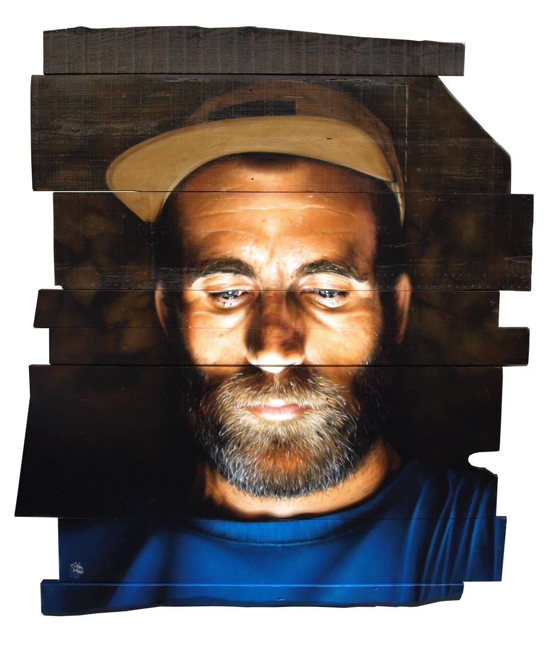 Sur murs ou sur bois, il peint des portraits hyperréalistes d’une précision sans égal. Autodidacte, il a dû sans cesse se renouveler, expérimentant les couleurs et les contrastes forts jusqu’à trouver la palette de couleurs qui embellira chaque grain de peau.